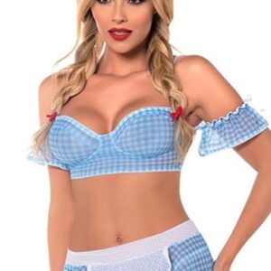 Büstiyer, etek ve stringden oluşmaktadır. Çorap paket içeriğine dahil değildir.