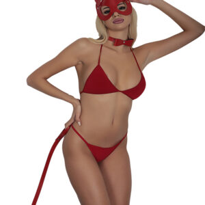 Censan Kırmızı Maskeli Deri 3’lü Harness Set Takım + İç Çamaşır Takımı