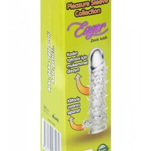 Normal penis kılıflarına göre çok daha esnek ve yumuşak zevk kılıfı. Süper esnek yapısı sayesinde her boyuttaki cinsel organa uyumludur ve penisi tam olarak sarmalar. Eager’ın üzerinde yer alan süper yumuşak ve esnek uyarıcı dikenler ve klitoris uyarıcılı gövde kısmındaki özel dizayn, klitorisi, G noktasını ve tüm vajina içini olağanüstü şekilde uyarır. Yüksek kaliteli TPE’den imal edilmiştir. Phtalate & Latex içermez.