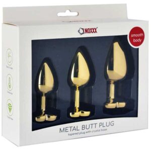 NOXXX Kalp Mücevherli Çelik Gold Anal Plug 3’lü Set