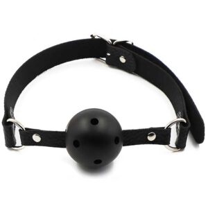 NOXXX Siyah Delikli Ağız Topu. Bantı ile birlikte 57 cm uzunluğundadır. Toptaki delikler sayesinde kolaylıkla nefes alınabilir. Bant yüzü sarması için esnek yapıdadır ve kemeri sayesinde kolayca her yüzde sabit durur. Topun genişliği 4.4 cm’dir. PVC maddeden yapılmıştır. 31.2 gr ağırlığındadır.